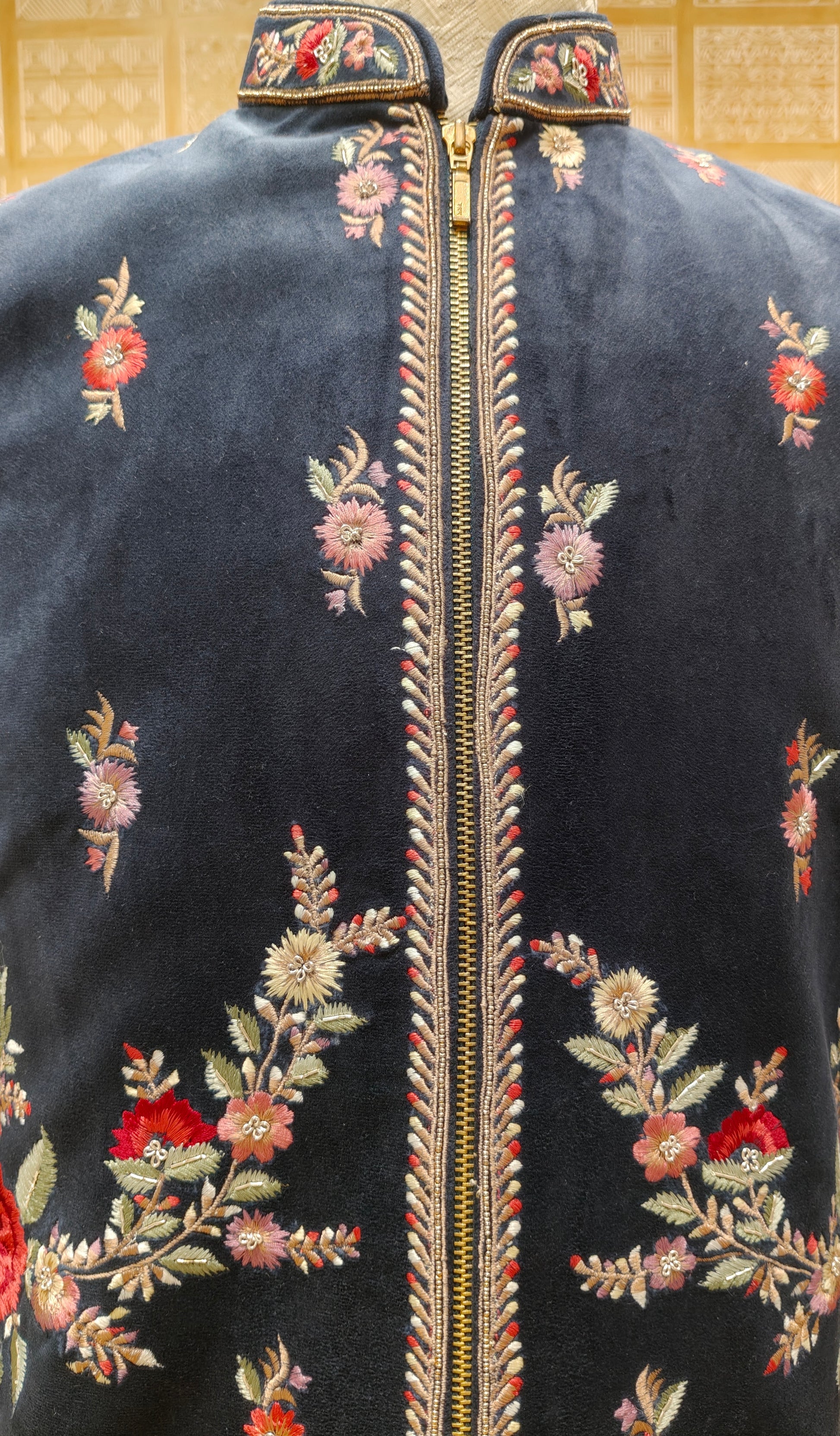 Texture: The velvet provides a rich, matte-finish look that serves as a high-contrast canvas for the vibrant embroidery.