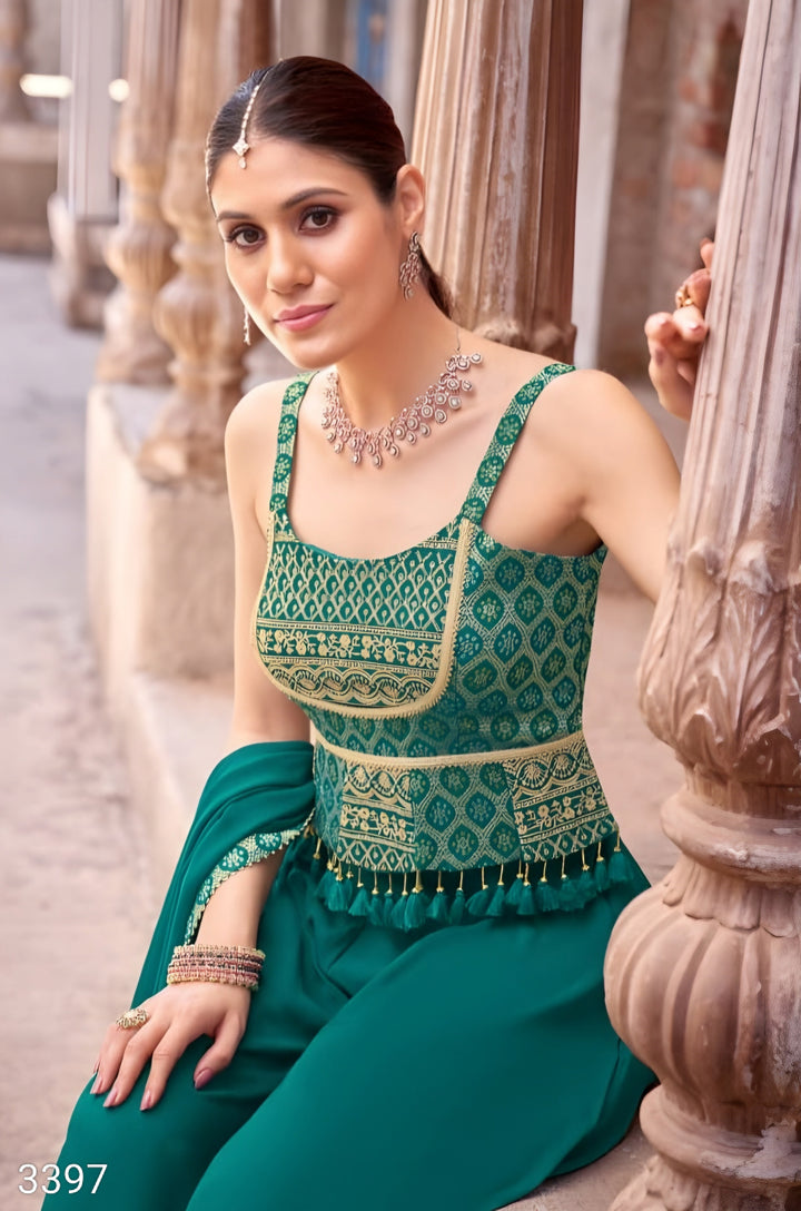 Green Colour Plazo Set(LE-WPZS_3397)