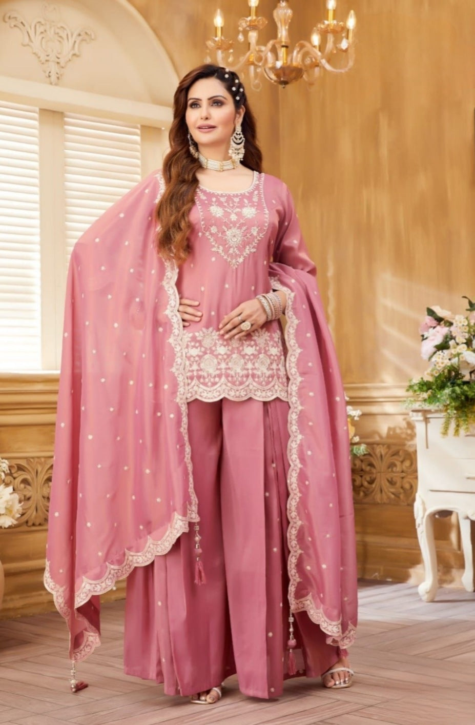 Peach Colour Plazo Set(LE-WPZS_1669)