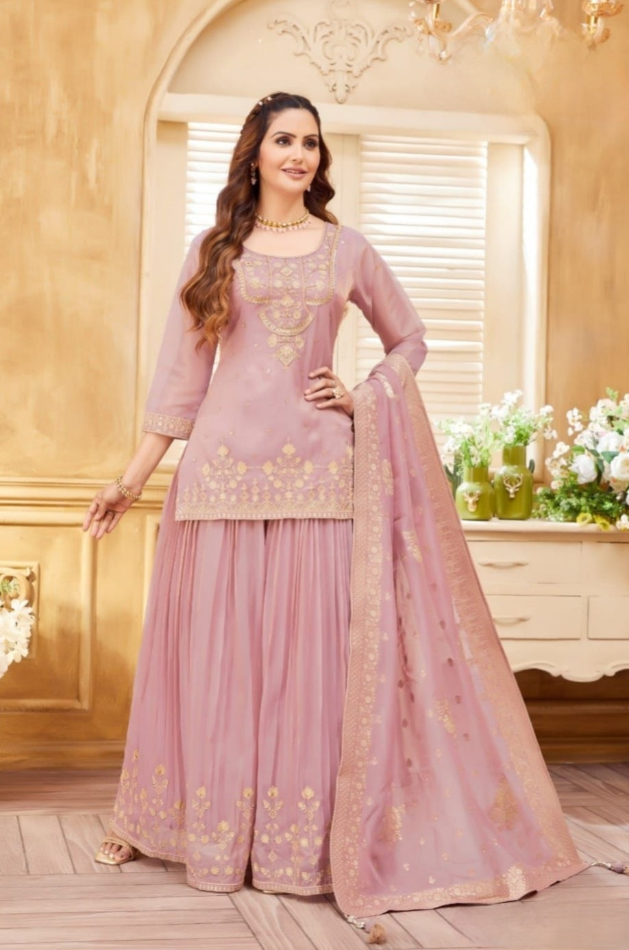 Deep Rose Colour Plazo S...